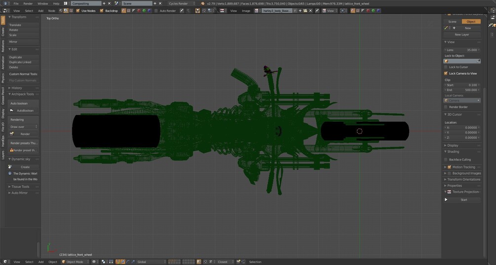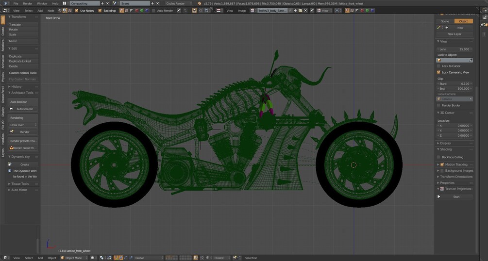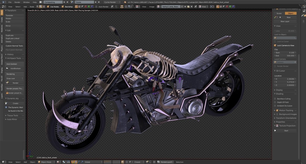 - Tires are displaced and have their modifiers un-applied. You can apply them or you can retopo a lighter geometry (that is subdivision level 4)